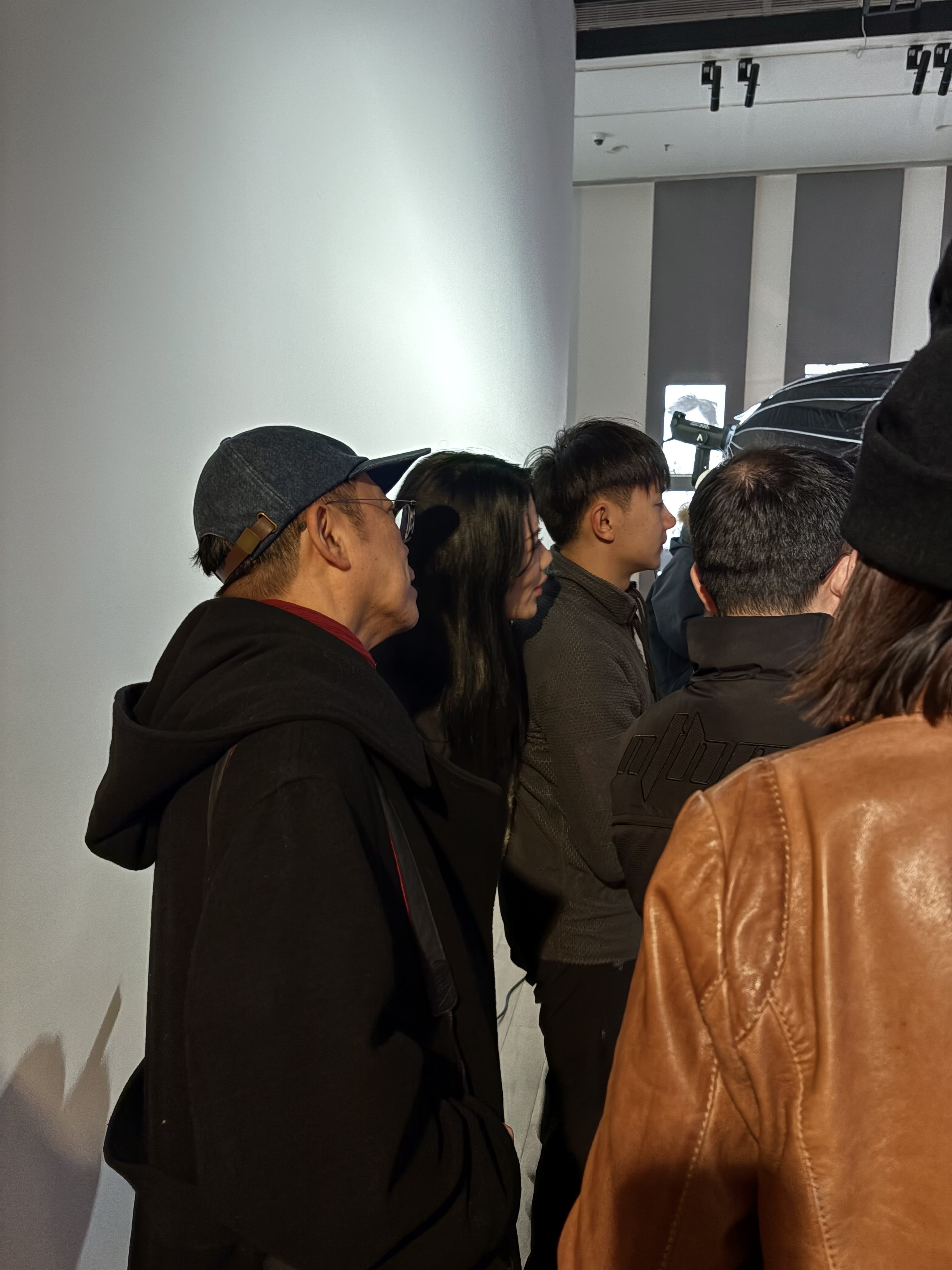 成都双年展采访现场,叶锦添观看媒体机位摆放
