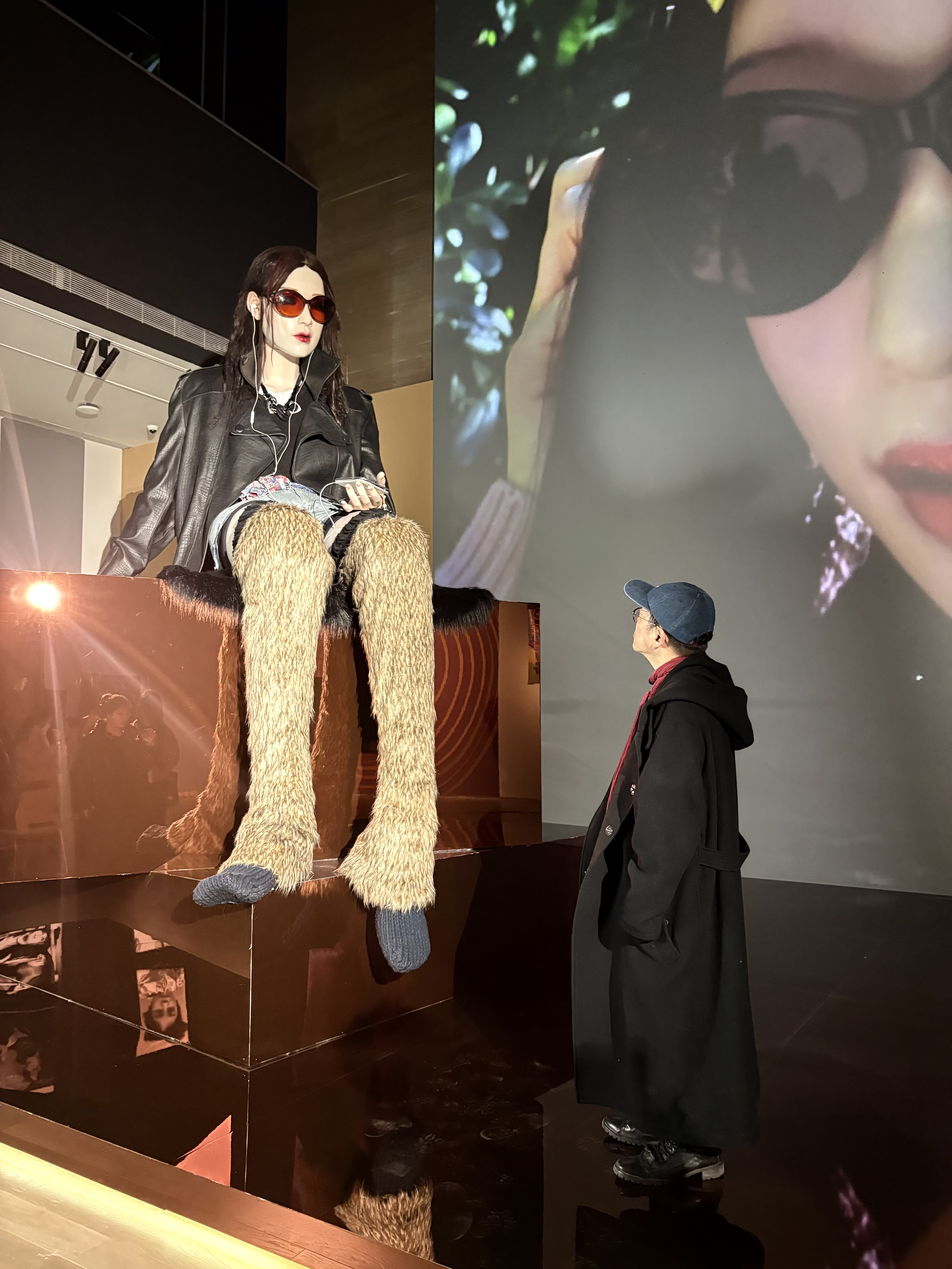 成都市美术馆的展厅里,巨大的少女Lili安静地坐着,从高空俯视着每一个进来观看她的“人类”。她十六七岁的模样,戴着墨镜和耳机,仿佛来自某个梦中的世界。近日,就在这件作品《深梦》前,叶锦添正在调整机位——不是他的镜头,而是媒体的。